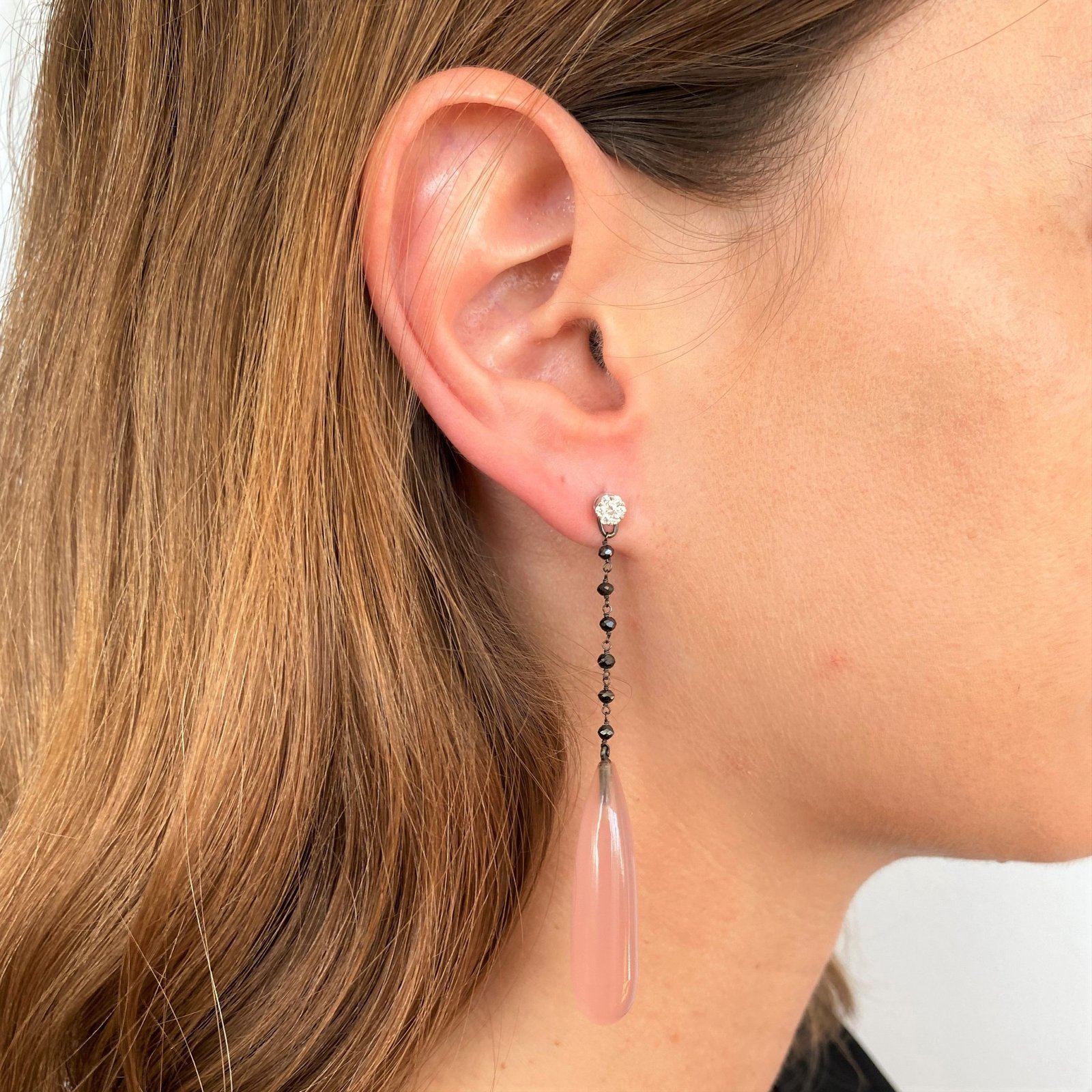 Black diamond and rose quartz earrings with removable diamond earrings.
