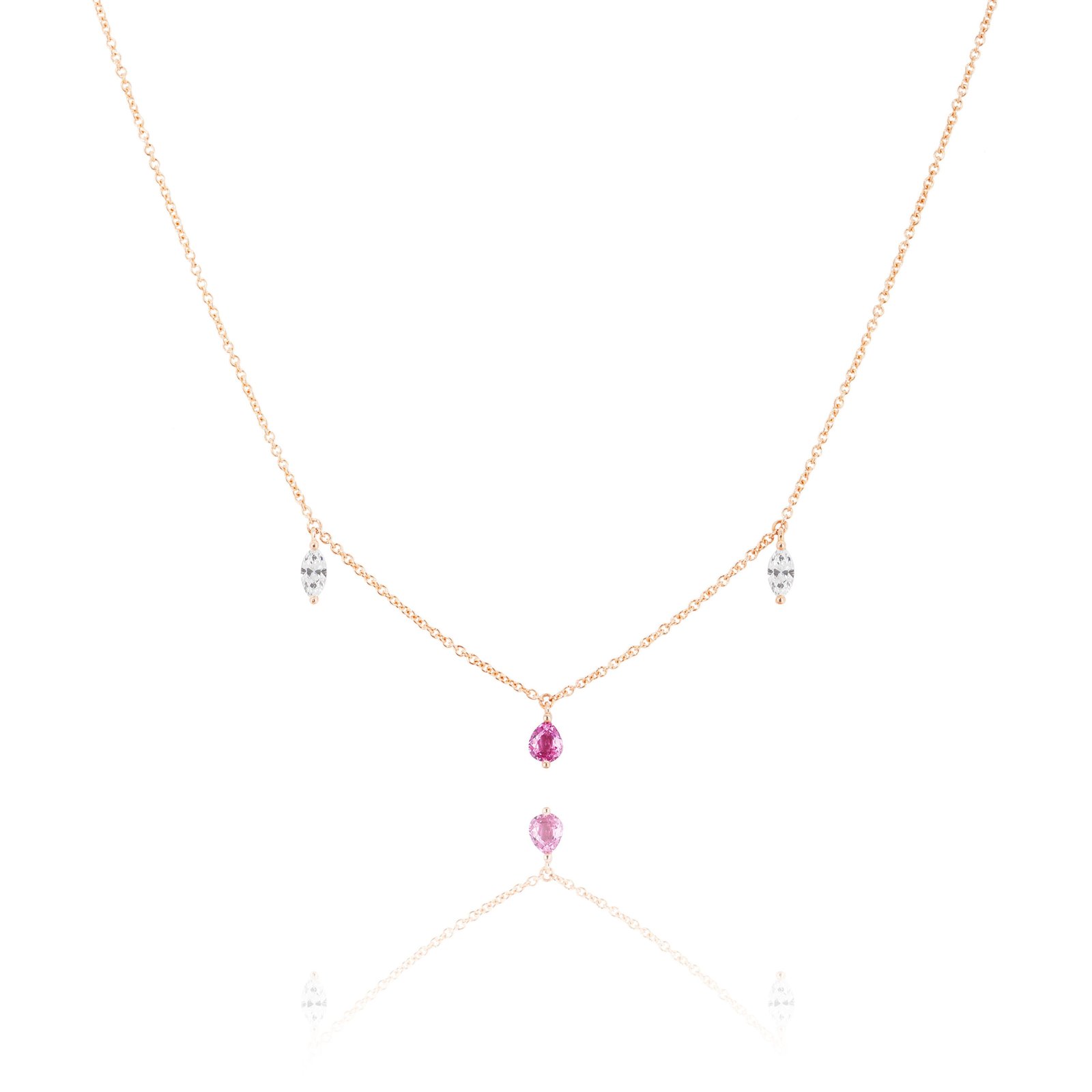 Colgante de la colección "Crazy Shapes" realizado en oro rosa, diamantes talla marquise y zafiro rosa talla pera.