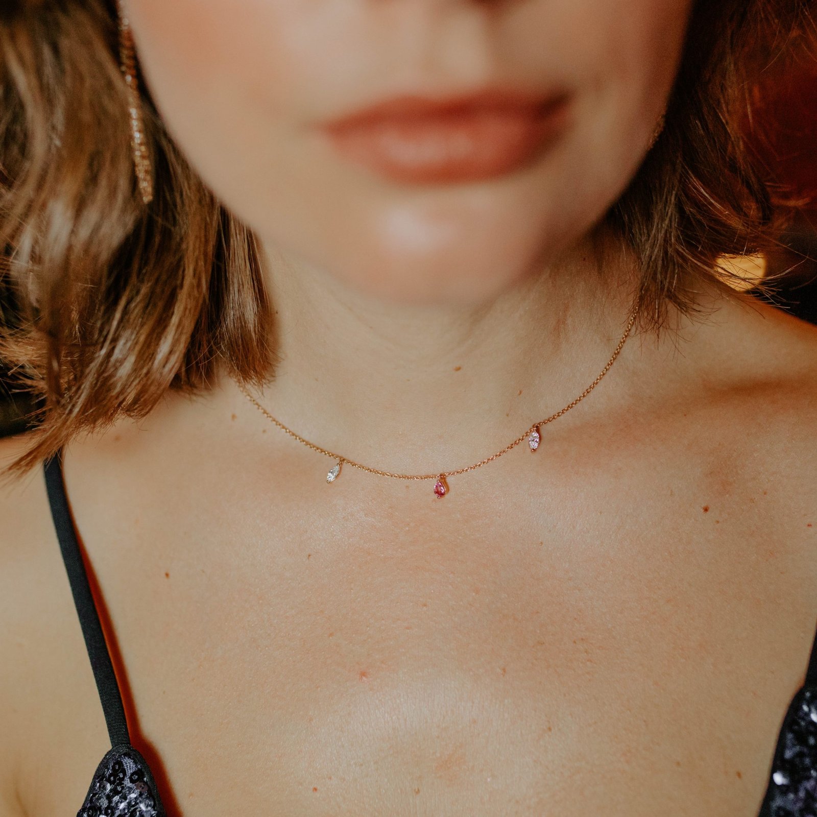 Colgante de la colección "Crazy Shapes" realizado en oro rosa, diamantes talla marquise y zafiro rosa talla pera.
