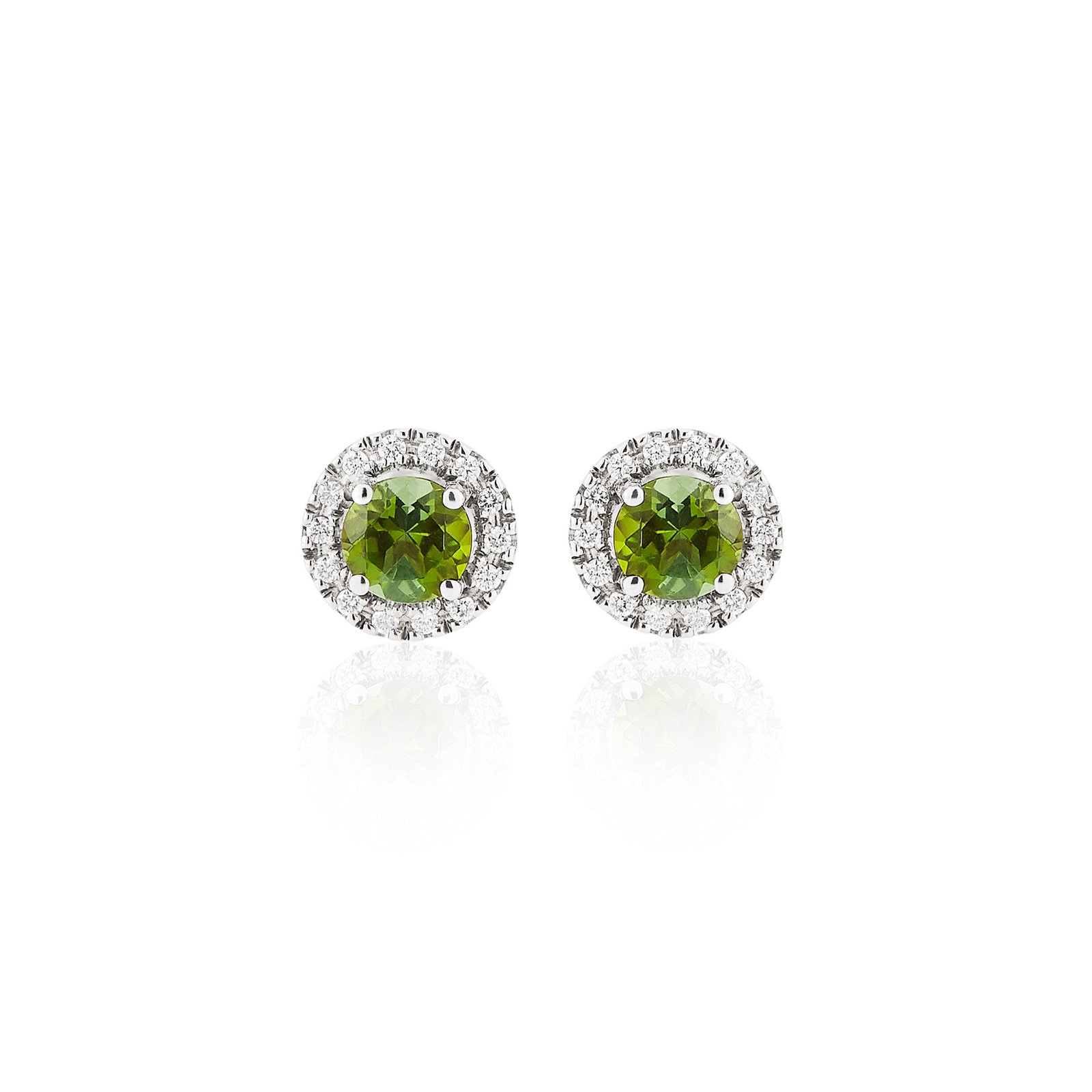 Pendientes de la Colección "Basic" realizados en oro blanco, turmalinas verdes talla redonda y diamantes talla brillante engastados con grapas. Cierre a presión. Tamaño: 0,7 cm.