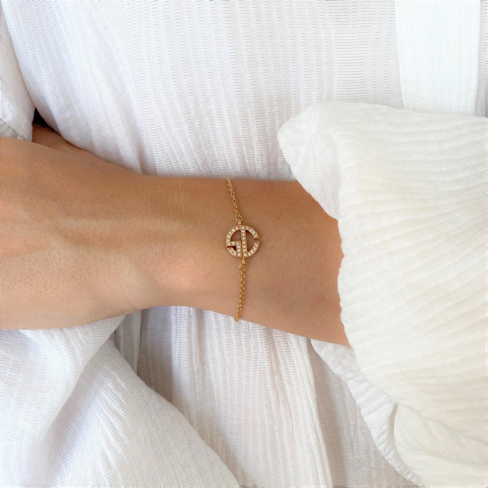 Pulsera con las iniciales SC en oro rosa y diamantes