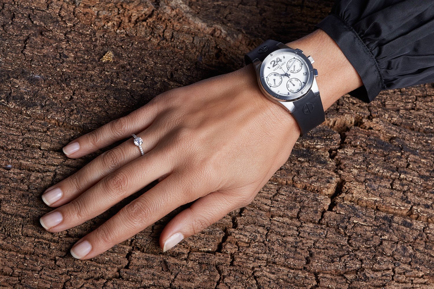 Diseñado por Soler-Cabot Chrono Lady Esfera Blanca 24 H es un reloj de estilo deportivo y náutico. Su elegancia y deportividad combina con todos los escenarios. Este cronógrafo combina grandes acabados con las funciones de cronometrar como de la selección del día de la semana, su sutil esfera hace que se visualice y resalte el detalle sus funciones.